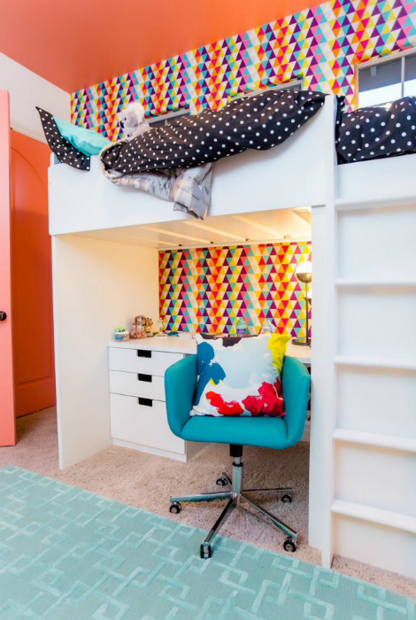 Кровать-чердак с рабочим столом под ней - прекрасное решение для оформления небольшой комнаты.