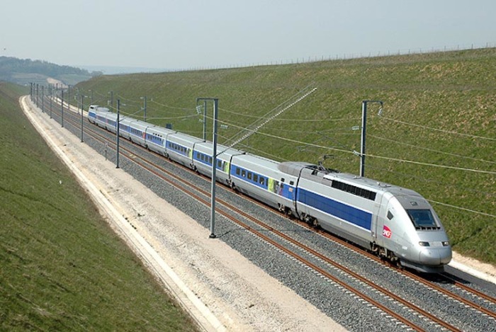 А вот представитель из Франции. Состав может двигаться на скорости до 300 кмч без перерыва. При этом он берет на борт ровно 900 пассажиров. Отличный результат! Кстати, данный состав даже принял участие в шоу Top Gear.